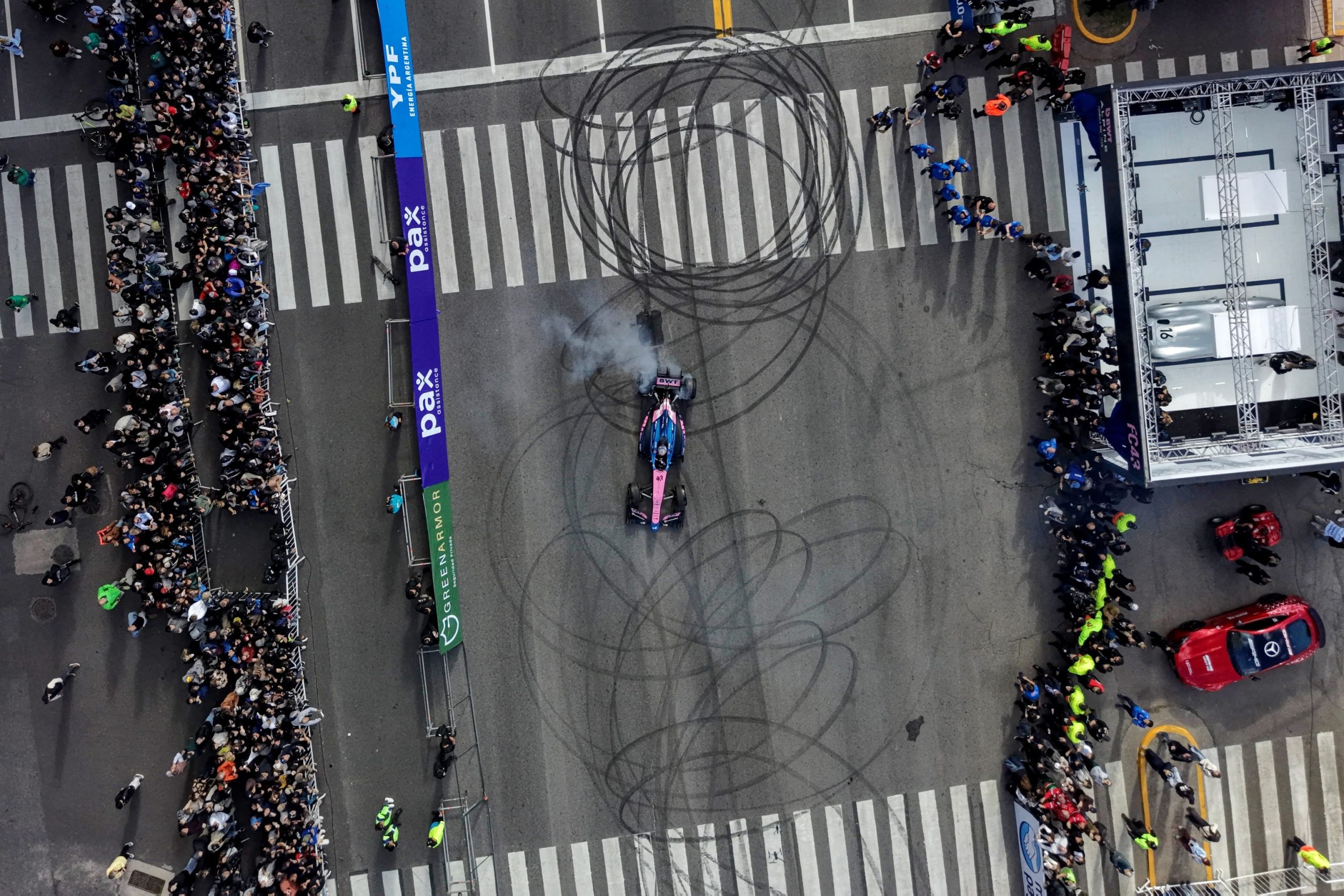 Las donas que realizó Franco Colapinto sobre las calles de Palermo a bordo de un Fórmula 1 (REUTERS/Tomas Cuesta)