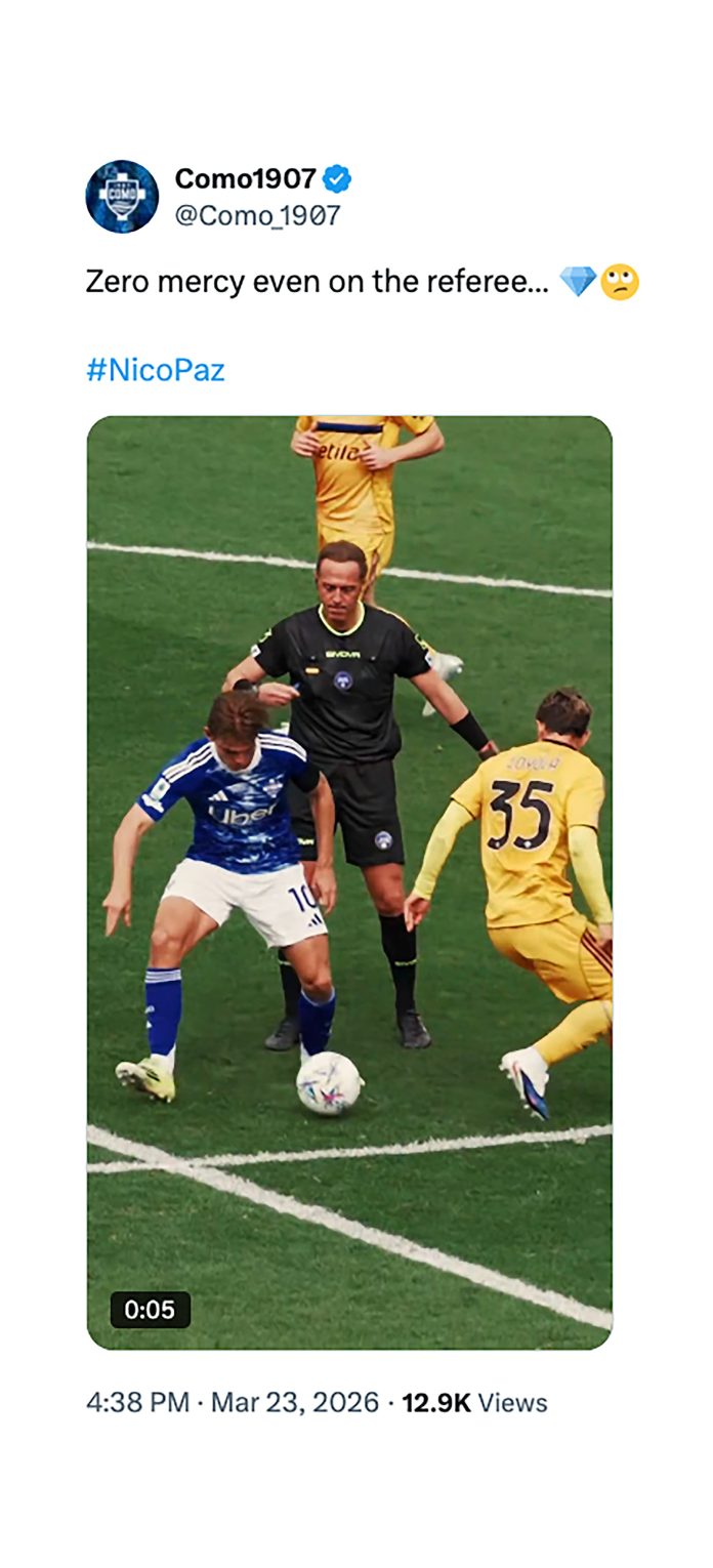 “Cero piedad incluso para el árbitro”, el mensaje del Como sobre una jugada de Nico Paz