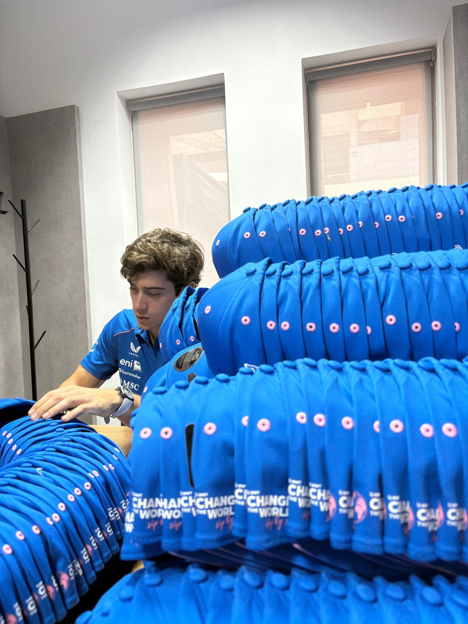 El propio Colapinto alimentó la secuencia con otro mensaje, acompañado de una imagen en la que se lo ve rodeado de gorras del equipo, escribiendo: “Cómo me hacen trabajar”. Este intercambio cerró una escena que rápidamente se viralizó, reforzando el vínculo entre el piloto y la base de fans del equipo francés.