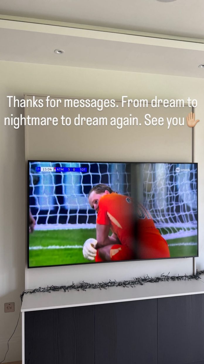 “De sueño a pesadilla”: el posteo del arquero del Tottenham que fue reemplazado a los 17 minutos por sus errores