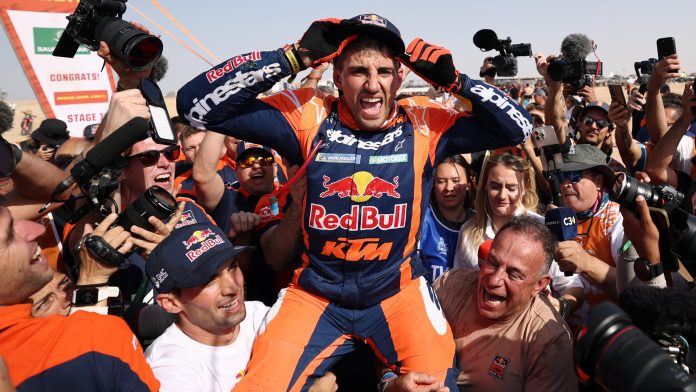(Enviado especial a Arabia Saudita) Una carrera que se extendió por 14 días, que contó con 13 etapas y más de 49 horas de acción cronometrada se definió por apenas 2 segundos. El Rally Dakar 2026 entregó un final electrizante en la categoría motos, tal vez la más apasionante de toda la historia: Luciano Benavides alcanzó la victoria más ajustada de la historia reciente del certamen, al adjudicarse el triunfo con una definición que se resolvió por una diferencia mínima. El piloto argentino superó a Ricky Brabec por apenas dos segundos al cabo de más de ocho mil kilómetros, en una competencia marcada por la incertidumbre y los contratiempos hasta el último tramo.