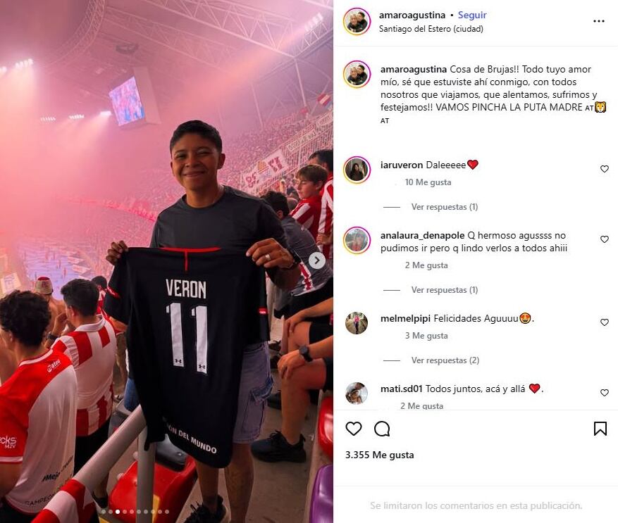 En su cuenta de Instagram, Amaro expresó: “¡¡Cosa de Brujas!! Todo tuyo amor mío, sé que estuviste ahí conmigo, con todos nosotros que viajamos, que alentamos, sufrimos y festejamos!! VAMOS PINCHA LA P… MADRE”.