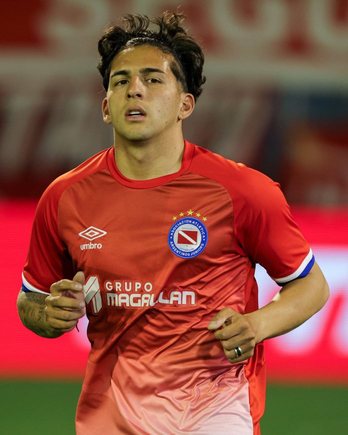 Hernán López Muñoz marcó el empate parcial y fue una de las figuras de Argentinos. Luego del partido tuvo un emotivo mensaje hacia su tío-abuelo, Diego Armando Maradona (Crédito: @AAAJoficial)