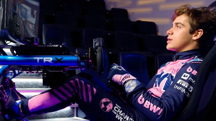 Franco Colapinto a bordo del simulador de Alpine mostrando el circuito de México (captura video)