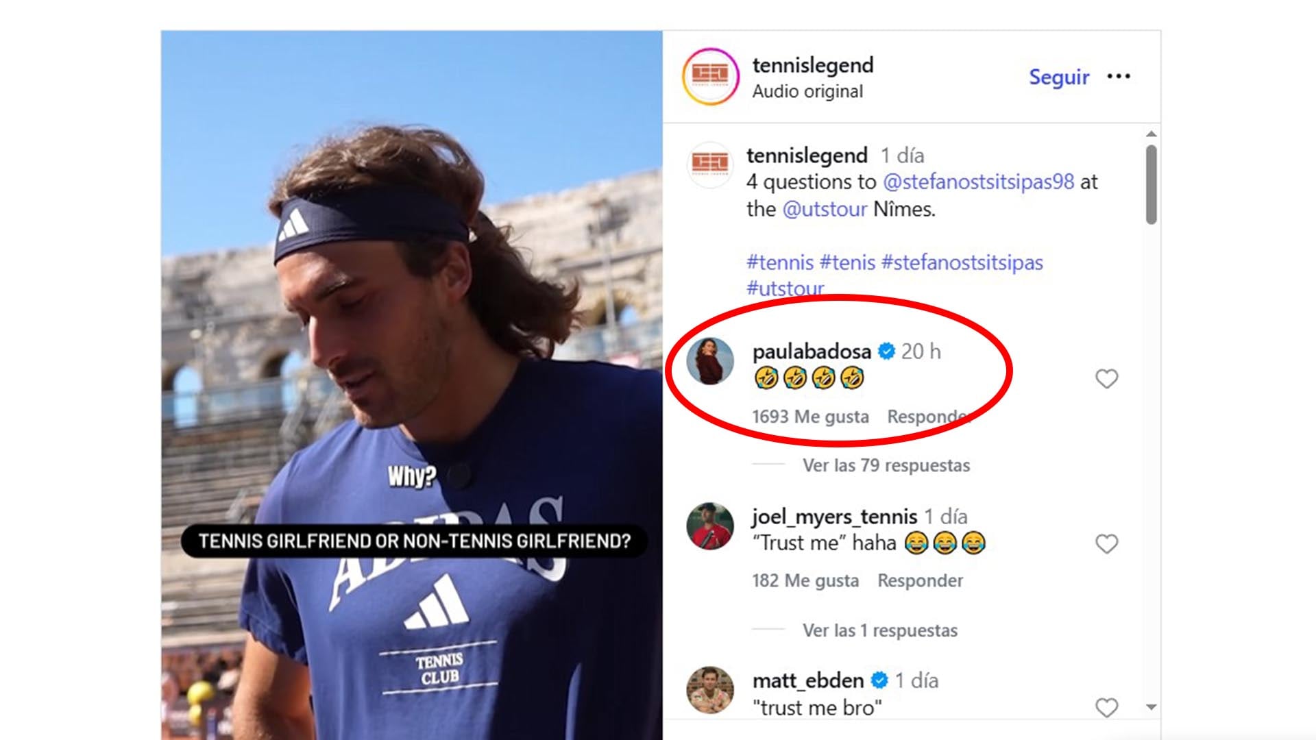 La reacción de Paula Badosa no tardó en aparecer. Apenas la declaración de Tsitsipas comenzó a circular en redes sociales, la tenista española optó por responder con un comentario en Instagram compuesto por cuatro emoticones de caras sonrientes. El gesto fue interpretado por numerosos aficionados y analistas como una respuesta irónica o una forma de restarle importancia al comentario del griego.