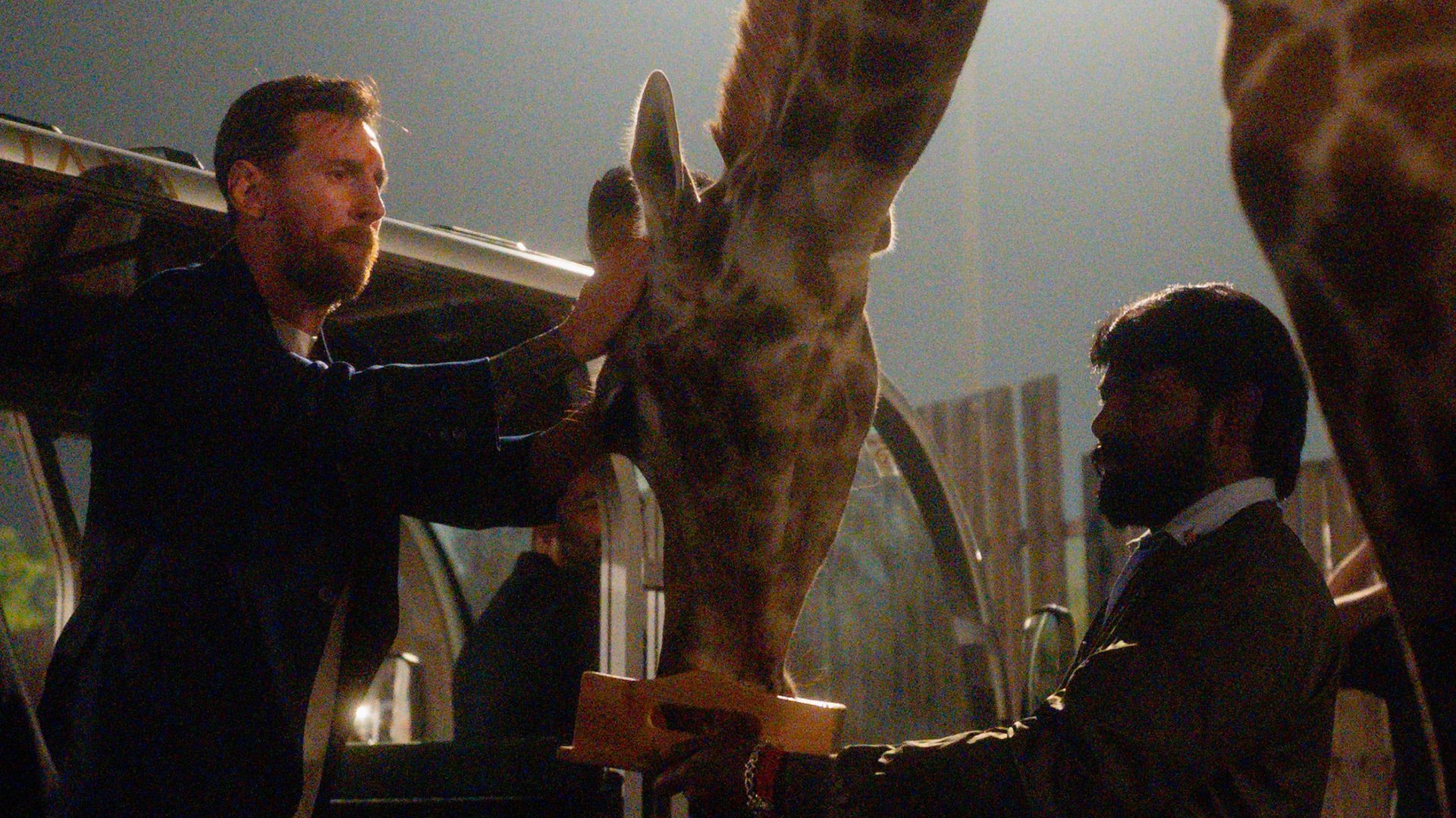 Messi interactúa con una jirafa (Vantara y Reliance)