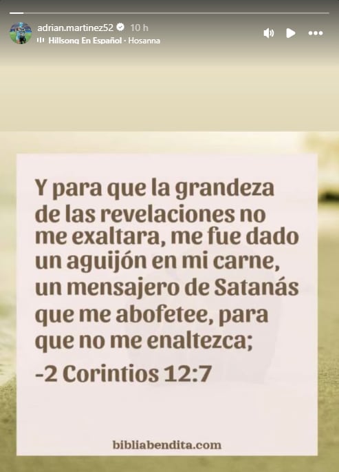 Al término del encuentro, el foco se trasladó rápidamente a las redes sociales, donde el atacante compartió un pasaje de la Segunda Carta a los Corintios: “Y para que la grandeza de las revelaciones no me exaltara, me fue dado un aguijón en mi carne, un mensajero de Satanás que me abofetee, para que no me enaltezca”. El texto, atribuido al apóstol Pablo, fue interpretado como un gesto de reflexión sobre la humildad y el sufrimiento.