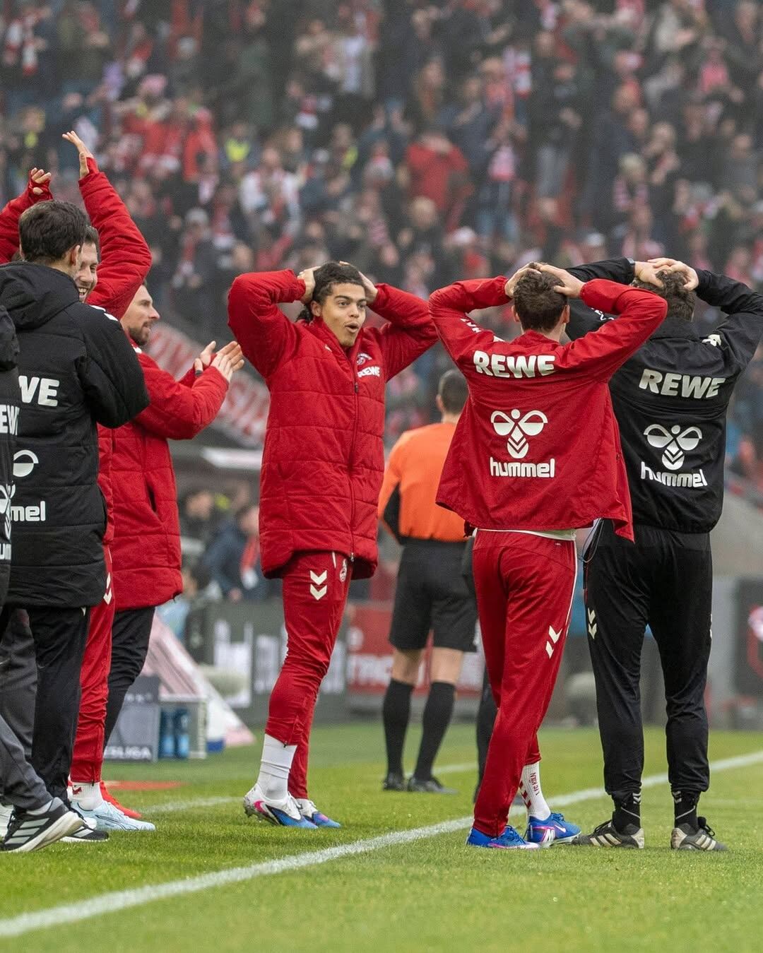 Los jugadores del Colonia no podían creer el golazo de Ragnar Ache (Crédito: @fckoeln/Instagram)